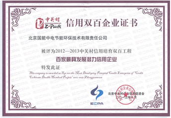 2013年8月,我公司首批入選“中關村企業信用雙百工程”名單,獲評“百家最具發展潛力信用企業”。